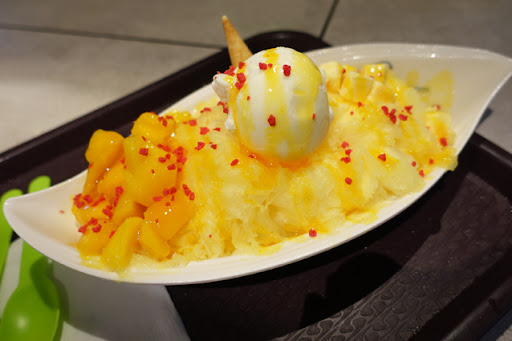Hot, spicy, and MSG-laden fried chicken really works up a thirst, so we hit up more makgeolli and order dessert. The Mango Shave Ice ($18.50) seems very pricy until we see that, like the fried chicken, the bowl is predicated upon sharing. It’s a wacky mix of cream cheese, canned mango and super frothy mango shaved ice, topped with a lovely ice-crystal free scoop of vanilla ice cream and scattered with crumbled freeze-dried raspberries. There’s way too much for even two thirsty, capsaicin-affected folk. Oh, and that chilli burn, which crept up slowly through the meal, lingered persistently all the way home, so I advise you to know...