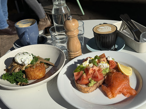 Read moreFood quality is very good and the coffee was great. However, the "Salmon Stack" meal (or something similar) is quite overpriced for what you get. $28 for a few strips of salmon, two undercooked hash browns and a bit of fennel seemed excessive. The other dish we ordered "Salmon breaky" on the other hand omits the hash browns and fennel but includes an egg, fresh soursough bread and a generous serving of avocado for $2 less, which although still quite dear, is somewhat of a...