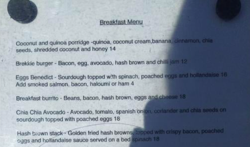 I ordered the hash brown stack (menu pictured below), expecting some delicious Persian inspired handmade hash browns. Imagine my surprise then when the server brought out a plate with only TWO of the 50c frozen hashes from Coles (also pictured). Realistically not enough to even be considered a full meal, the other elements of the dish didnât make up for it at all. The baby spinach was just a handful of bland leaves and the serve of hollandaise was meagre. Although I was feeling a bit cheated out of some cash and was already thinking about what I was going to have to cook myself once I got home, this on its own wasnât terrible because I figured the staff would be responsive to some polite remarks.