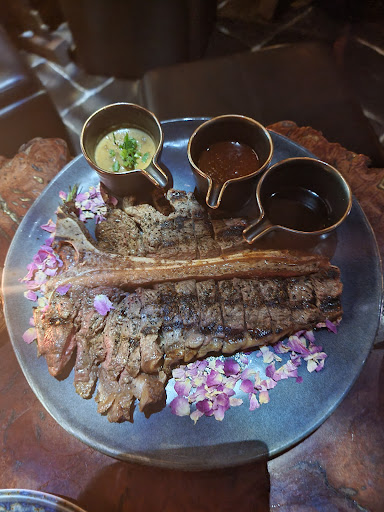 Food wise, everything we tried on the menu is beautifully cooked and with quality ingredients. The food came really quickly and the staff were really attentive during service. We had the 600g T-Bone steak, served with 3 delicious sauces and full size pumpkin & cauliflower salad between 2 and the sizzling prawns. The couple next to us got the scotch fillet, calamari and the pork belly which looked to die for. I definitely recommend this place and will definitely come back. Every cocktail I saw looked amazing, there was quite a cocktail menu and a really good vibe.