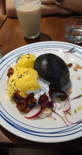 Food: Charsiu pork with eggs benedict: egg benedict cooked well, still soft and runny. You can see the bun in the photo, it looks like it was punched by someone š . The bun is not easy to cut, there is a layer of pickle on top of the bread. When you cut this food, it would fall everywhere š¤ it tastes ok. I like Omurice and Fettuccine Boscaiola, they brings nostalgia. The size of the dish was good. Salmon dish has a good presentation. However, the Salmon wasn't really fresh, maybe just one day thing.