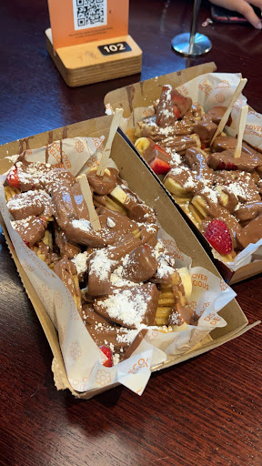 Read moreUtterly disgusted - furious actually - at the service I received tonight. I ordered churros for two and a macaron and waited just shy of 40 minutes to receive my order. Then, to add insult to injury, when I finally got home to share it with my son the ice-cream, sprinkles and strawberries that I paid for werenât there. I enquired multiple times as to where my order was and was told each time, âItâs getting done nowâ. There were so many staff members working that technically nobody should have had to wait longer than 10 minutes for their order, however, the staff were so mismanaged, so unorganised and without any direction that no one received their order in a fair and reasonable time. I watched TWO girls pack ONE Uber Eats order over and over again. I watched a tall girl with dark brown hair and freckles be completely unproductive by being perpetually confused by each order. She did nothing but converse to other staff about what each order meant. She did a great job of looking busy but actually doing nothing. I watched the girls at the back who were making the orders comment on the âcrazy busyâ night they were having but didnât see any of them move with a sense of urgency or purpose. I watched multiple order stuff-ups which resulted in orders having to be remade and in turn making the insane wait time even worse. I watched ONE runner sweat, apologise and scurry around and she is literally the only asset to the business. I believe her name is Kez (or something similar). About 30 minutes into my wait another runner joined the poor girl but she was slower and avoided conversations with annoyed customers like the plague. A competent team leader or manager is desperately needed to sort out these young, inexperienced staff members. Such a shame because San Churro is usually a...