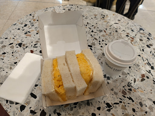 The coffee was disappointing. I was the only customer for both the sando and the coffee. My sando was ready before the coffee and the coffee was a little burnt.