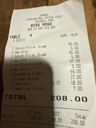 READ TO THE END: Pricing is a bit misleading if you have a look at there price list on the web site and then you go there much more expensive so obviously they haven’t updated there prices which they should but I found very strange is when you order stake with mush potato’s and vegetables you pay full price what they advertised $45 then they charge you extra $5 per serving for vegetables which I find very unfair so there steak is $45 dollars with salad and chips and if you order vegetables and chips it’s $5 more I have gone there many times but I always use to just pay the bill and never look at it or taken a copy this day I went and I don’t know why but decided to take it and when I got home I just had a Quick Look at it and saw all these extra charges of $5 which I was surprised if that’s how they do things they have lost me as a customer for now. And the question before we ordered was can you get it with mash and vegetables they said yes we have a chose mash or chips with salad or vegetables nothing about cost of $5 I really don’t care about that $5 It’s just the principle to say if you want vegetables it cost $5 more then I can make that decision not just lump me with something you just told me it will cost the same but to some may not mean nothing to some it will boil there blood 🩸...