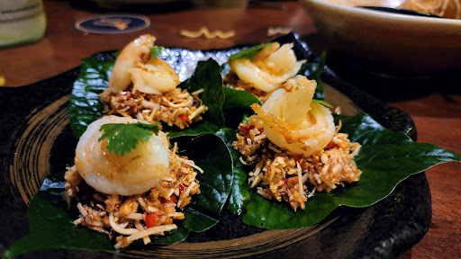 Peking duck pancakes 3/5 - just ok, I had higher hopes for this one Prawn betel leaf 5/5 - nice prawns and salad, we added a little extra chilli for a bit of a kick Salt and pepper calamari 5/5 - really nice crumb and not overcooked. The sauce was a little sweet, but it worked Tofu and veg chilli jam 5/5 - we agreed this is the best we had in a long time Barramundi (pla nung manow) 5/5 - not a large serving but fish was cooked perfectly and you could taste all of its delicate flavours Savoey kao soi 5/5 - generous on the beef rib, mix all up and enjoy, this was probably my favourite dish. The pickled veg and various toppings balanced this dish expertly.
