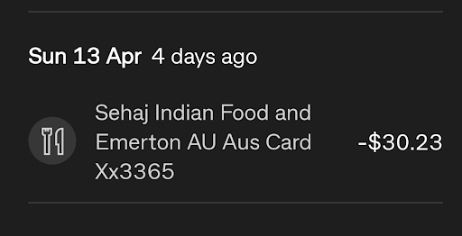 I finally got my money back from Uber. Thanks to Uber. We usually buy food from Sehaj at Blacktown West point and also Wentworthville. It's not bad there. It's decent enough to enjoy meal occasionally. Emerton used to send good food as well. Somewhere it looks like staff is...