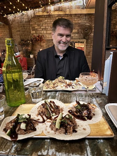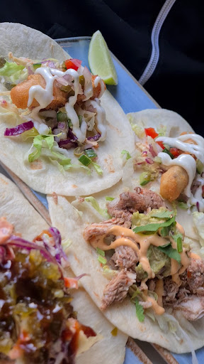 A couple of weeks later, on a Tuesday, we came in and sat in the courtyard; it was fairly early, so we were some of the only customers, and the tacos were exquisite! So inexpensive, so chock-full of goodness. We paired them with the spicy margaritas which perfectly complemented the tacos, and… Wow. Such fun. Our server was super friendly, and the courtyard was cozy even though it was a bit of a chilly day. Two tacos per plate (times three different versions) was certainly enough for dinner. And the flavors were really well-balanced. The hoisin duck was awesome! The fish was also very good. The only disappointment was the smoky pulled pork, because we felt that the barbecue sauce was a bit thick. We are from the American south, and so we love barbecue sauce, but we use it a sparingly, because it can be overpowering. So maybe if they pulled back a bit on the barbecue sauce with the pulled pork. Overall, we were thrilled with the tacos, and the service, and the price, and the margaritas. If we lived here, we would be back on a...