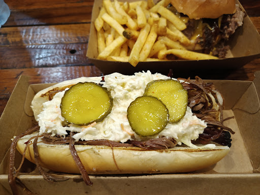Read moreIm a smoked brisket enthusiast so when I was in the area visiting friends of coarse I went here, I went here Saturday night after looking at the menu online and wanted a brisket roll but when I got there only saw brisket burgers on the menu which costed a bit more but I might have missed it, so I went for the brisket box which was an easy back up anyway the guy who served wasn't very nice but the man eating his dinner on break greeted us nicely so 50/50 service, after I ordered he immediately cut the brisket up which was cut messily but is was very speedy service which is nice for some people, one piece was super thin and the other thick and unevenly cut which I guess doesn't matter but literally no other smoke house Iv been to has cut them this badly, the price was the same as any other place with brisket boxes being $30 but seems to have less diversity in the box, all you get is the meat with a small roll, pickles and sauce all other places Iv been have more sides for the same price and I get 3 nicely cut pieces so its consistent. None of this would have mattered though if it was really yummy but they even lost me there, the flavour was non existent it was missing that sharpness I always get, the meat was tender so still good but I didnt get that mouth watering feeling I usually get, very fatty too which I like but I know lots of people don't, most places are more lean, unfortunately there was essentially no flavour throughout the meat it needed...