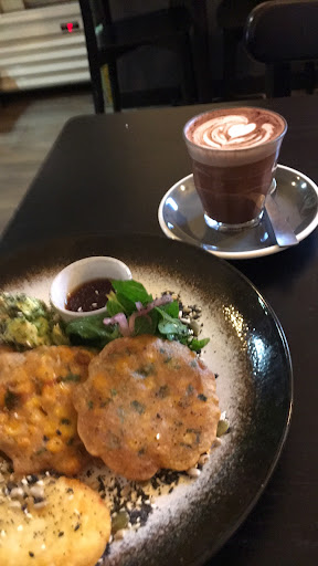 Read moreI live locally and I am vegan so I tend to go to places that are 100% vegan but these guys looked good and I look them up online first for vegan menu options! I have to say I’m very very happy with the level of service and are a few nice options for vegans. The chocolate they use does not have dairy in it. I didn’t see any vegan sweets and I forgot to mention that would be nice to have but I was trying to get home before it rained heaps! Beautiful atmosphere and lovely artwork. I’m very happy with the service. The coffee I got was fantastic and the corn fritters are vegan. Very tasty. I will definitely be back soon! This is a great place for all because sometimes my friends who are not vegan or vegetarian will want other options so I will happily bring...