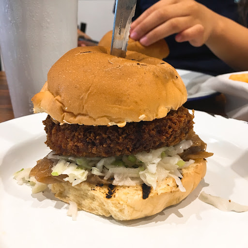 The food is what you'd expect from any vegan burger place. It doesn't taste like meat, but doesn't taste like plant either. Whether a burger is good or just average depends on the actual burger itself, your experience will vary. As long as you're not expecting to be eating meat, you'll be fine.
