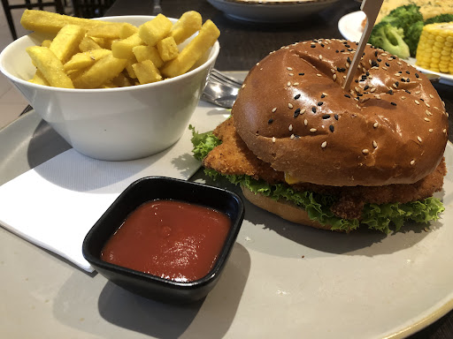 The food was insanely good!! The garlic bread was a little dry, but definitely full of flavour and super crunchy. Steamed veggies didn't disappoint either, and the garlic prawns (which my godmother ate) looked amazing. My highlight would definitely be the burger. The chicken was so tender and crunchy, and the lettuce tasted super fresh. The chips had just the right amount of salt and were also really crunchy, but it was a shame that I couldn't finish it all.