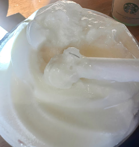 My friend and I ordered two Frappuccinos. I usually open the lid to enjoy the whipped cream, but this time I found a sharp, black hair-like object stuck in it. It looked like facial stubble or some kind of body hair. After confirming there was only that one object in the cup, my friend approached the staff member to ask about it. His response? “That’s strawberry hair.”