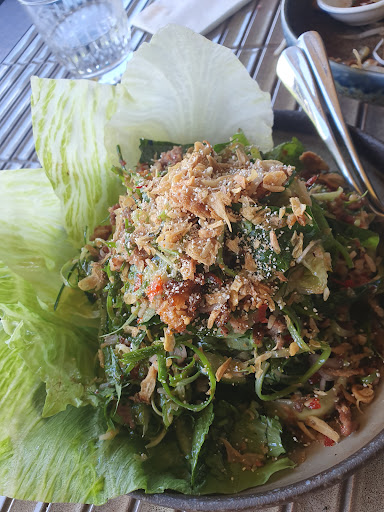 We shared cold entrees of kingfish Betel leaves and the raw scallop special before moving into an amazing octopus and green paw paw salad and pork mince in lettuce cups. Finally the signature brown fried rice was devoured with Crispy chicken and blood plum sauce. Servings were all generous and worth ever cent. It is certainly on the more expensive side for a takeaway meal but in these lockdown times it is the closest thing to going out to dinner with...