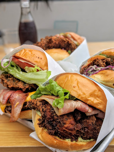 I ordered the special - fried chicken, cream cheese and pickled jalepenos with bacon - and the double with an added mushroom pattie...