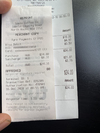 I heard about their coffee and saw the pages of coffee trivia on their website. When I went there (Saturday the 16th of Jan), I was quite inquisitive. I asked the waiter for single origin. She didnāt understand. I then spoke to the barista and she told me they only have a blended variety and thatās it. Not impressed with that start. Anyway we ordered coffee and then we chose our breaky. We ordered at the counter. While the total bill was about 38 bucks, they were asking me for a surcharge on a visa debit card!!??!! I am not fussed about the money here but why surcharge for an amount as that? They couldnāt answer so I cancelled all our orders, walked out, went to copper and cocoa cafe and enjoyed their single origin coffee as well as good breaky without any mysterious and questionable surcharge added to the bill. Agree that I didnāt taste the Suolo food but I donāt go to a cafe for their food or drink only, itās the overall experience that matters and the fact that they need to keep up to what they advertise. Whilst this is nothing against the lovely staff there, I feel the lack of coffee awareness and the surcharge points to the owner. I am disappointed. I usually am the coffee person for my friends and colleagues and they rely on me for info re new cafes or coffee bean availability. Suolo is not going to...
