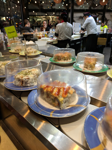 Normally, in our experience, Koreans run the best Japanese Sushi Trains... but this is an exception... like many of the restaurants around the Parramatta Westfield-train-and bus Hub, the food is mediocre. In this case trying to popularise Sushi by adding rich European sauces and Mayo for a Western-Sushi Fusion experience has lost the purpose of the original cuisine... to serve the freshest and tastiest cuts of Sushi, straight from the chef's knife to your mini-sized Sushi plate..this is Tourist Sushi at its most mediocre. The restaurant is set in a large semi-circular glasshouse near the train interchange and looks trendy from the outside. Inside you are greeted by courteous and helpful staff who assist you to a Covid-safe seating space at the train. The kitchen staff opposite your seat and immaculately presented in what could be Continental Airlines cavin uniforms of the 60s... very original. The train is stacked with plenty of dishes (in fact, double stacked) and little signs at every seating station clearly state the dish costs by the usual colour coding.. But that's where the joy ends... and the occasional pure dish of salmon or tuna sushi is overwhlemed by the over-treated 'decorated sushi dishes'. You can order your own cuts and other dishes like Udong noodles, at extra butnreasonable cost. Not expensive, but definitely not great. Won't...