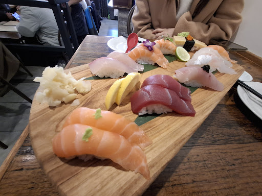 A small, cozy café with a minimalist design and a constant line of customers—mostly waiting to grab their sushi to go. The display of takeaway sushi looks incredibly appetizing, with generous portions that immediately catch the eye.
