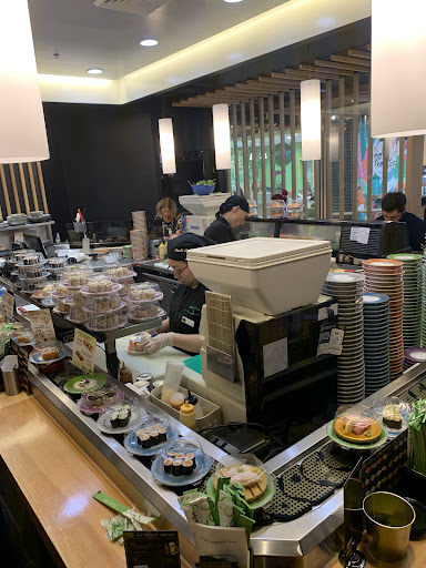 Visited for lunch and it was ok, but I wouldn't return. The venue is tiny and there isn't enough space between seats. With no under table pegs, bags and coats have to be stored on the floor/your lap, which then bumps into the people next to you and vice versa. No one came to clear my lids as I went, which meant I had very little space. No one offered me a drink, so I left thirsty. The food was ok, but the selection wasn't vast, so I repeated one of my dishes three times :/ It didn't however taste as fresh or as flavourful as I would expect from sushi. You could see stacks of ready made portions held to one side waiting to be placed on the train. When I was done, I had to wait far too long for someone to count my plates and provide the bill. Eventually one of the sushi chefs went ahead and did it as the other staff were all in the back room - no idea what they were doing. Having eventually paid, I left frustrated and completely...