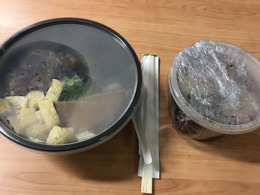 The takeaway comes with the soup base separately packed which makes it taste extra fresh when you mix it all together just before you eat.