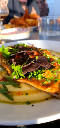 The menu is predominantly seafood, a natural choice given the proximity to the sea. From the sea menu, we tried the Balmain bug risotto, which was cooked just as risotto should be, and with the addition of nice small chunks of Balmain bug. Beautifully presented with edible flowers, Creme fraiche and edamame, this was a popular dish amongst our group.