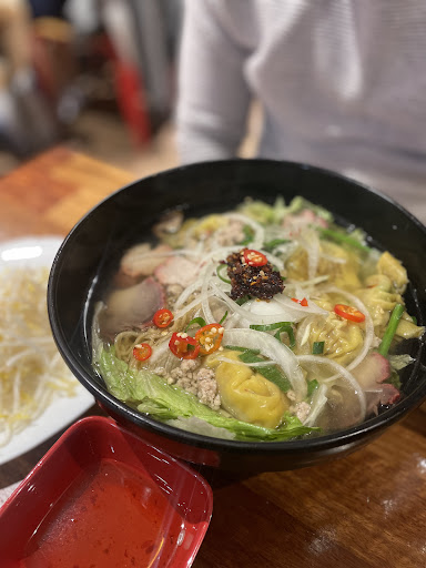 do not TRUST the photos on the menu!!!! First time I'm here and I looked at a full bowl (I had the crab meat tomato soup, my dad had the bun bo hue, my mum had the sugar cane prawn dish I think..... My parents meals were nice, but portions, it's disappointing. Can't believe we were fooled and decieved by the photos on the menu showing A FULL BOWL when we were ONLY GIVEN HALF BOWL WITH LESS PORTIONS!!!! 😡 And my dish... There were no flavours of the crab meat, there were scrambled eggs in soup instead. Tomato soup tasted bland. And vermicelli doesn't suit it. Go to other places and they serve you a FULL BOWL for the SAME PRICE or $2 cheaper, more flavoursome, thicker noodles (almost like udon) and thickened soup. Tomato and crab flavour in too. And they don't give tomato wedges like they do here. Other cons.... a) one sheet of pork meat b) one small 🍤 prawn