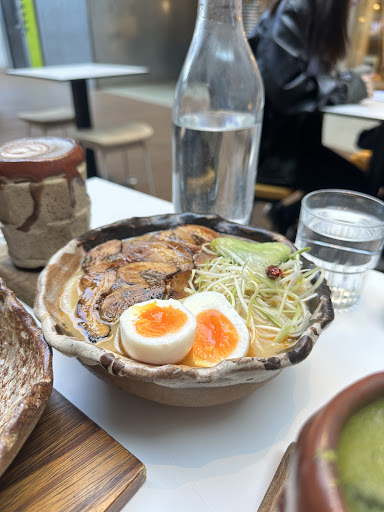 Read moreThe food was delicious and very filling. They have a unique menu of ochazuke (tea on rice) that is rarely seen elsewhere, and some other things like cold udon and ramen. Definitely a cool experience to come here. However I think you should only come here if you're starving. I got the breakfast set thinking it would be like a typical breakfast but when it arrived, it was so big. I don't even remember how I finished it, but I appreciate the great value. I also noticed that everything on the menu seems very heavy. There isn't really anything light you could get if you weren't that hungry-- everything had some sort of meat or rich broth or was deep fried. Even the "smalls" were all deep fried or meat (except for the sashimi but that's still fish). I guess you could just get a drink or dessert, but there would be nothing savoury for you as a light meal. Nevertheless great food. They do close at 2:45 so they slowly kicked us out, and I'd recommend sitting outside bc the inside seating was actually so hot and stuffy, whereas there was a cool breeze outside.