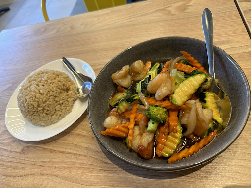 A bit too sweet - everything. Oyster sauce veggies, Tom Yum soup - the more you eat, it just gets more and more sweet. The fun part is - I asked for no sugar. And rice, no matter brown rice for me or fried rice for my husband was too dry and hard.