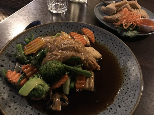 I’ve ordered from here before and it was average take away food. Which was fine but this is the first time I recall sitting down inside. I sat down to an empty restaurant having been directed to the single chair, all good. Nice staff apart from the banter at the counter which is fine I’m not going to tell them how to run the place. The jasmine tea arrived first. Delicious. Then my entree arrived and was slammed on my table. Simple mistake but no apology which was fine. I was treated to substandard fried tofu crinkle cut sliced with a bit of sweet and sour sauce which made it bearable. Then the main arrived. The presentation was just atrocious. Vegetables drowned in a pool of soy with a bit of satay lumped on the top. I managed to get through the tofu and some of the vegetables were fresh but overall a very disappointing meal. I was going to order fried ice cream but I’m way to scared to. At least I had a nice jasmine tea to wash down the disappointment. I don’t think I’ll be coming here again till they lift their game. Which may be never. Not quite sure what I’m paying for this but it’s not worth it...