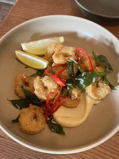After browsing the menu, Michelle and I decided to share a starter. We chose salt & pepper prawns. They were accompanied by a bowl of sriracha sauce. The prawns were crisp and spicy, and the sauce gave them extra zing.