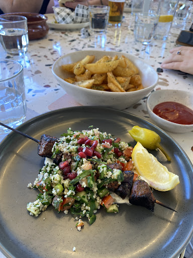 The biggest shock was the pricing. At $13-$15 for a pint and wines costing $50-$90 for a bottle you can get for under $30, it feels incredibly overpriced. We paid $88 for a small mezza platter (one dip, two skewers) and two pints, which just isn't sustainable value. This pricing seems to be driving people away rather than drawing them in, creating a negative cycle of low traffic and high costs.