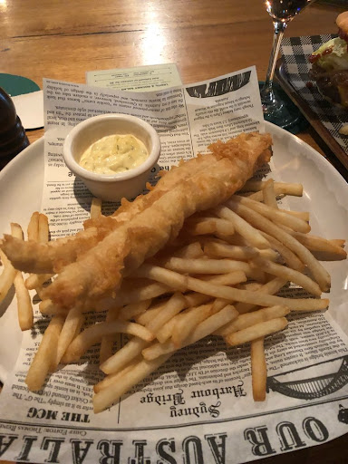 Fish & Chips with cabbage slaw, tartare on special for lunch is $15 and non peak is $26. I love fries with fish so I was very happy! Good value especially on special.
