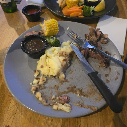 Table was sticky, asked politely for it to be cleaned. Took 30+ mins to get my haloumi burger and chips + bruschetta (avoid, it's just garlic bread with diced tomatoes and onion). My table got their meals 10mins earlier which was a vegetable stack and rump steak W chips and salad (sauce was a miss). It was a busy restaurant so some forgiveness there. Took another 10mins for plates to be collected. Staff need to be more diligent and less careless. I have worked in retail for 10 years. Even if you don't like the work you gotta do what is best for the customer. Would I visit again? Probably not. Lots of parking as it's near Southgate Shopping...