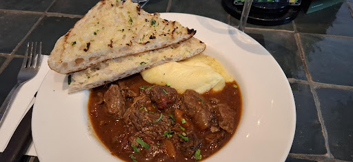 I visited this pub with three old mates for a second time, last Thursday. We like this pub for the delicious food, the pokies and the quietness of the venue at lunchtime, so we can have a yarn without shouting. This time my mates ordered the Surf and Turf ($30) consisting of Rump steak, topped with creamy garlic prawns and served with chips and salad. They enjoyed their meals immensely. The gobbled it down so quickly, that I didn't get an 'untouched meal' photo. I ordered the Irish Beef Stew ($26) consisting of authentic Irish Stew, served with creamy mashed potato and well buttered, Turkish Bread. I did get a photo of that. I loved it, gorgeous pieces of beef, melt in the mouth tender. Didn't leave a skerrick. We washed our meal down with 3 bottles of 2021 Sweetwater Shiraz ($44 each) which tasted great. Really enjoyed our visit and will be back in the future. A lunchtime meal here is highly...