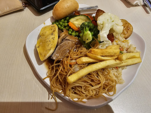 My partner and I tried out the Chinese side first, so disappointed that their signature sweet and sour pork tasted old and stale! It was so hard to chew let alone swallow! The most decent food out of the whole Chinese range was the honey chicken and fried rice. Their spring rolls were gross, the vegetables inside them tasted a day old and were totally off. The lamb and Indian options, particularly the so called lamb Masala, it tasted like unfrozen meat and just had absolutely no lamb taste to it at all. I couldn’t even move pass the first spoonful. Over to the veggies, I didn’t understand why their pumpkin were not warmed up when they were directly under the heat?! The salads section I saw absolutely no one touch, just by looking at it, it made you question how hard the pastas were and whether it was created for display because it was constantly sitting pretty. The soft drink selections, I can’t understand how you can’t assure paying customers that what they’re drinking is actual fizzy! Not one of those options tasted like soft drink. It was very disappointing! Then you have the cakes and deserts that were hard and taste like it was made by the bulk. The sushi train was also a good 3/10! The surimi tasted funny and the only decent flavour was the tuna rice and avo. It was truly a big disappointment overall. Didn’t help that there were limited options. If you like 1.5 quality food and can eat with your nose blocked, this is the place for you. I would not suggest dinning here even if it means you can eat all the honey chicken and fried rice, it’s...