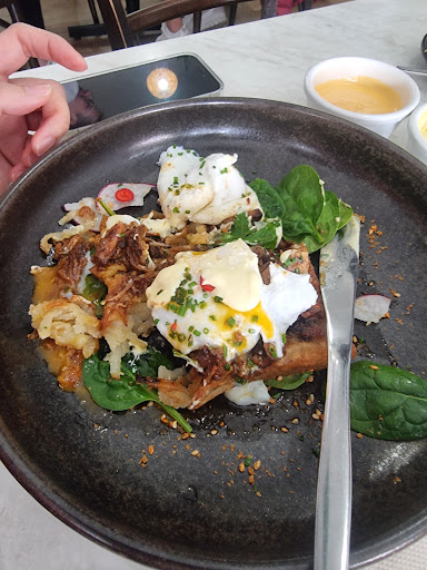 This place just out of standard. We ordered 2 signature benny and hatters breakfast. When the dishes arrived our table one of the signature benny is missing 1 sauce on top compare to another same dish. FYI, the dish is drizzle with hollandaise sauce and Sriracha sauce. When we ask the staff to give us the missing hollandaise sauce on the dish. However, they bring it back to kitchen and send it back without any sauce on signature benny (who want the egg benny without any sauce??). Then we tried to explain to the person who seem like a manager and she seem like couldn't understand what we trying to explain to her. At the end, we just ask them just give us some sauce on ramekin.