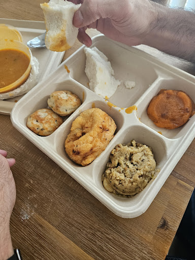 Bought Rava Kesari which taste like carrot halwa and was in dark orange in colour. This is not the rava kesari taste which taste different from Rava kesari we get in Chennai, India. We need to search for nuts and it looked as though the container was not fully filled, however when we bought it home, it looked as though someone has scooped some of the contents. Imagine for Ghee dosa, extra charge of $1.90 for Ghee. I have never seen such an unusual cafe. No more buying from here.