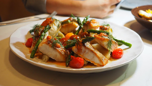 Featuring an abundance of locally-sourced ingredients and styles, the menu is designed to emulate Sydneyâs colourful natural landscapes and diverse personalities. The seafood is all caught in NSW, and with the menu changing with the seasons to reflect the locally-grown produce made available, there is no doubt that the chefs have laboured long and hard to present the best that Sydney and Australia have to offer. And it really is the best â with the most sublime calamari and oysters Iâve ever come across, as well as brilliantly tender lamb and some inspired takes on classic desserts, such as chocolate brulee, and a stunning bombolone with Creme Pasticcera to remind us of The Markeâs Italian influences.