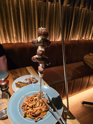 Next, unfortunately one of our guests food came out both undercooked and cold. He asked for the beef skewer medium but it came out rare and thus can probably explain why it was cold. We sent it back and it came back well done…. Really poor.