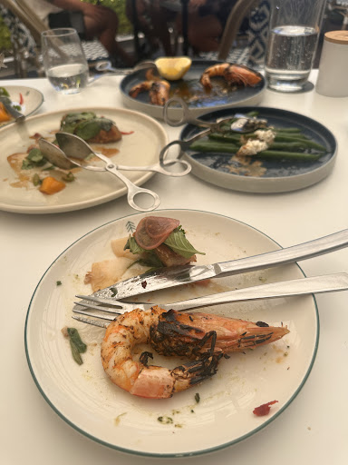 Upon arrival we were checked in immediately, seated swiftly and offered table water. The restaurant was packed and super loud to the point it was hard to hear the wait staff at all, there was a bit of a delay in ordering at first but this didn't ruin the atmosphere and we spent almost 2 hours here overall. We were seated in a booth with really comfy seats and views of outside.The resturant lighting was dimmed as the night went on. The staff were very well trained, attentive and lovely considering the rush. Our glasses were constantly filled with table water for us, drinks were checked on for us regularly without having to ask. We ordered the fried squid ($26) to share for entree- the mint and zucchini were a nice add to the dish and we found it big enough for two. We had a main of Lamb Shoulder ($45) and Potato Gnocchi ($35). The mains were again both filling and decent portions. The food was well cooked and fresh.