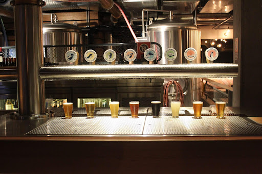 We lined up 7 from their taps. It was like a rainbow of beer showcasing some very distinct styles of lager and ale:
