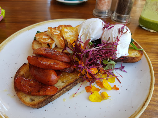 Read moreGreat place for coffee and brunch. Food is really good, and done with a lot of care and attention. We had the chicken burger - was one of the best chicken burgers I've had. Slightly spicy, miuntanousnly tall, gold slaw and soft buns with very crispy and tasty chips what more can you ask for!? Halloumi and chorizo was good too but I felt the chorizo could have done with more spice. French toast was utterly delectable but very rich - don't try it on your own but perfect for sharing. Only criticism (and what stopped it being 5 stars) would be the slow service. Not a problem for a lazy Sunday brunch but I wouldn't go if...