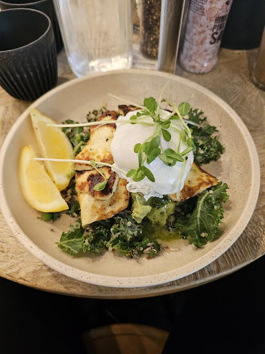 Read moreI came here on a Saturday around 3pm, and the service was lovely! Accidentally sat myself instead of waiting (wasn't aware) but was immediately explained how to order and given tap water and the menu. The atmosphere of the Cafe is lovely, and definitely a homely/beach vibe. Inside is quaint and quiet, but if you wanted a bit more socialisation, their seats outside put you right near the sidewall of the bustling busy city people, which can be nice as well. I had the Green Breakfast Bowl, and an iced latte. Make sure you squeeze all the lemon on the bowl though, that, along with all the different flavours and textures, make this an flavour explosion in your mouth. It was amazing, and despite being quite healthy, was also delicious, the halloumi with the egg, and the avocado was amazing, and despite hating peas, enjoyed their presence in the meal. The iced latte was refreshing, and the espresso inside was rich and amazing. Overall, the price was also very reasonable and not ridiculous lile other places. The service was amazing and quick, and the food is worth it. An enjoyable experience on the...