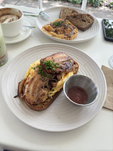 By the weekend, I was still curious about the pork belly scramble, so we came back again! This dish was next-level—cafe-style food with a Filipino twist. The pork belly with the vinegar dip was so flavorful, and the portion sizes were great. We also brought our dog, Poppy, and it was clear this place is super dog-friendly, with a water station outside and even puppuccinos!