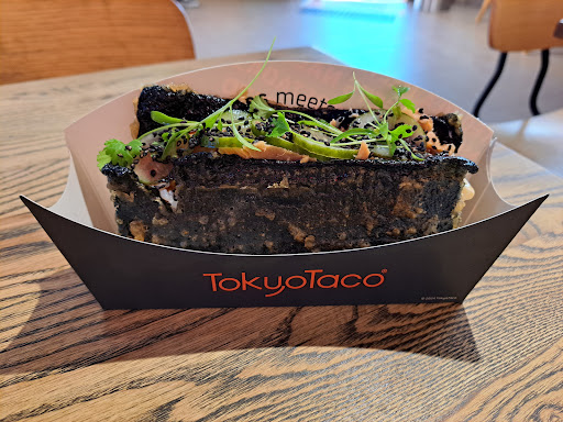 1st visit. Sumptuous food served in a basic take out style joint, paper/cardboard receptacles like a food van might use. The strong point here is the amazing food; a Japanese/mexican fusion which - for the salmon taco at least - rivals a hatted or starred restaurant. That said, the food greatly outclasses the venue which has almost no seating or ambience, and passable staff. Neither of us could comprehend the counter hand who mumbled inaudibly and had zero engagement, enthusiasm and energy. So, to presentation - its great food, but no plates available for dine in, just a cardboard folder to hold it, like a G-y-G or similar.... The dish I enjoyed was the salmon taco and the black taco is tempura fired making a crisp texture contrast with the salmon. truly delicious. A work of art. But my guest ate nachos which was okay. But they missed out.