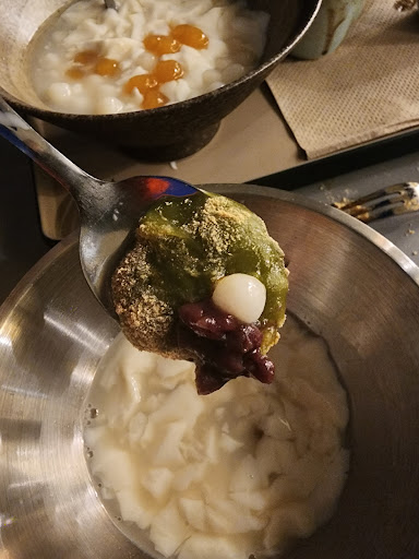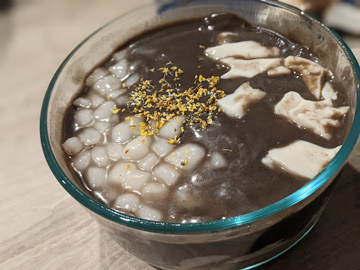 I ordered the hot soya pudding with black sesame mochi and barley. The pudding itself was warm, but the toppings were cold, which threw off the balance a bit. The mochi lacked chewiness, and the black sesame in it had a gritty, uneven texture - at least not as smooth or well-blended as I'd hoped. There was also too much water in the bowl. The soy milk served on the side was good (and sugar free!), but adding it to the dish really diluted its flavour.