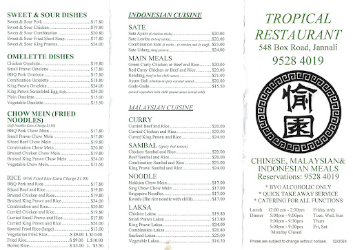 Read moreHave been going to Tropical for over 30 years. Went a couple weeks ago, early on a Fri night with our grand daughter. Sadly we won’t be back. Slow service, or no service really as take away service seems to have taken over business? When leaving & trying to pay bill, even customers waiting on take out were complaining about how long it was taking. Food good, but sadly in house customers seem to be served after take out customers are the...
