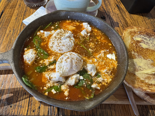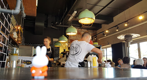 An industrial/rustic themed cafe on the main street of Rosebery where rusted corrugated iron decorats the walls and the outside tables are repurposed industrial spools. It's very quaint, popular and can get busy.