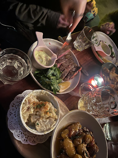 They need to be known for their food. Not just their cocktails! The baked spiced cauliflower is perfectly seasoned, and the vegan potatoes are crispy and delicious. Iām obsessed with the sesame falafel and the baked eggplant with pearl couscousāALL dishes had us melllting.