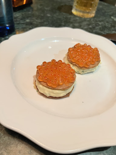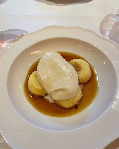 Starters & Small Plates Many of the smaller dishes showed great promise, though some lacked refinement. • Scallop Rockefeller (coriander, lime, Gruyère): The concept was exciting, but the execution fell short. Rather than being infused with flavour, the scallop felt overwhelmed by the herb crust, which was overbaked and charred. A more balanced, nuanced preparation could really elevate this dish. • Salmon Roe Sandwich: Absolutely beautiful—delicate and flavorful, a definite highlight. • Roast King Prawns (curry, butter, ginger, lemon): This dish was a standout. The ingredients were perfectly balanced, each element shining without overpowering the others. • Roast Quail (Vadouvan sauce, Granny Smith, watercress): Bold and aromatic, though the flavour could be softened just slightly for better balance. • Stracciatella with Plum, Eggplant XO, Roast Onion, Radicchio: An intriguing and well-composed dish. The bitterness of the radicchio paired beautifully with the creamy Stracciatella—reminiscent of a dish you’d find in Puglia, Italy.