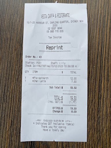 2O21 REVIEW: Tried this for Saturday brunch and was extremely annoyed and so disappointed that we walked away. Our orders were taken and 45 minutes later the food wasn't ready. Despite 2 attempts to follow it up the staff just said, "sorry, it's coming". We were told they were attending to the big table with about 10 people. Would have appreciated it had we been told of the wait in the first instance. A can of coke and a serve of tea costed us $12 a bit of a rip off. Not coming...